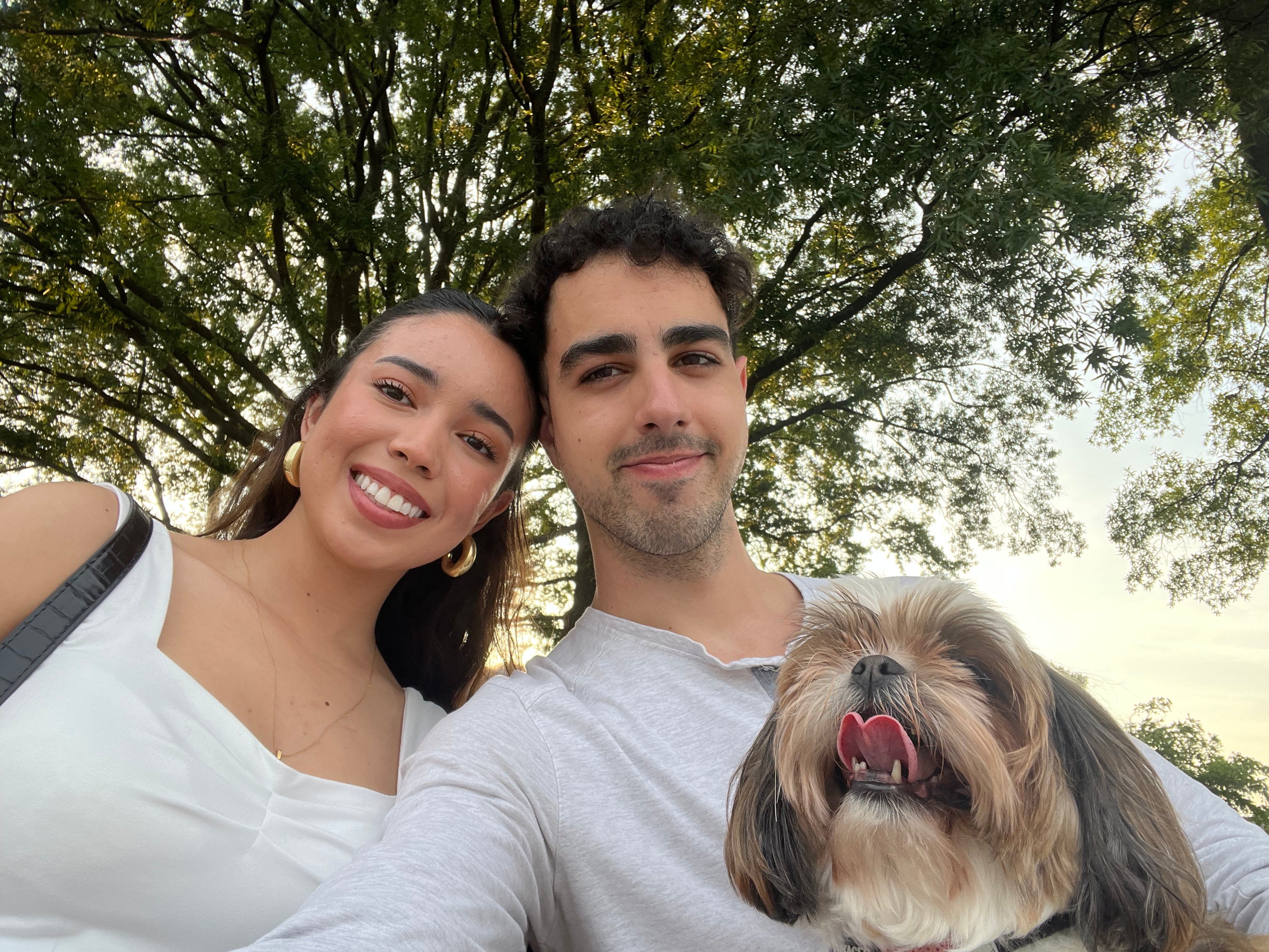 Paula & Sebi — the heart and soul behind Mascota Vida. (And yes, that's Molly Sue photobombing. 🐾😄 She's 12 and has zero regrets.)